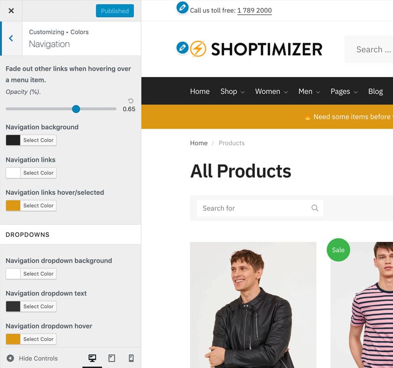 Use the WordPress customizer for instant design changes.